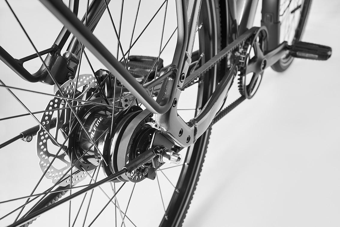 Alfine 11 ist die Schaltnabe von Shimano mit präziser bedienbaren Daumenhebeln statt Drehgriff, die mit einer breiten Übersetzung auch auf Anstiegen und Abfahrten Leistung zeigt.