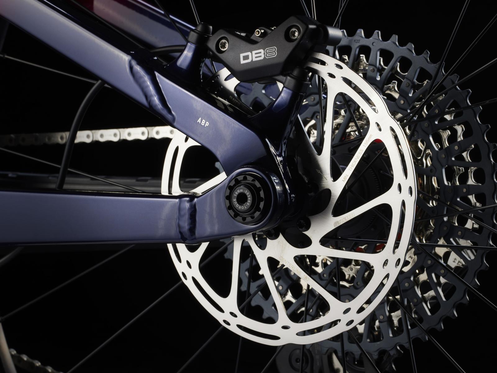 Active Braking Pivot erlaubt unseren Ingenieuren die Feinabstimmung, wie die Federung unabhängig voneinander auf Beschleunigungs- und Bremskräfte reagiert. Das vermittelt dir in kritischen Situationen mehr Vertrauen.