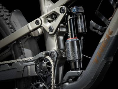 - Sein High-Pivot-Fahrwerk mit hohem Drehpunkt bietet in anspruchsvollen Abfahrten absolute Kontrolle, während fein abgestimmte Anti-Squat-Werte und die übergroße Umlenkrollen für erstaunlich effizienten Vortrieb sorgen.