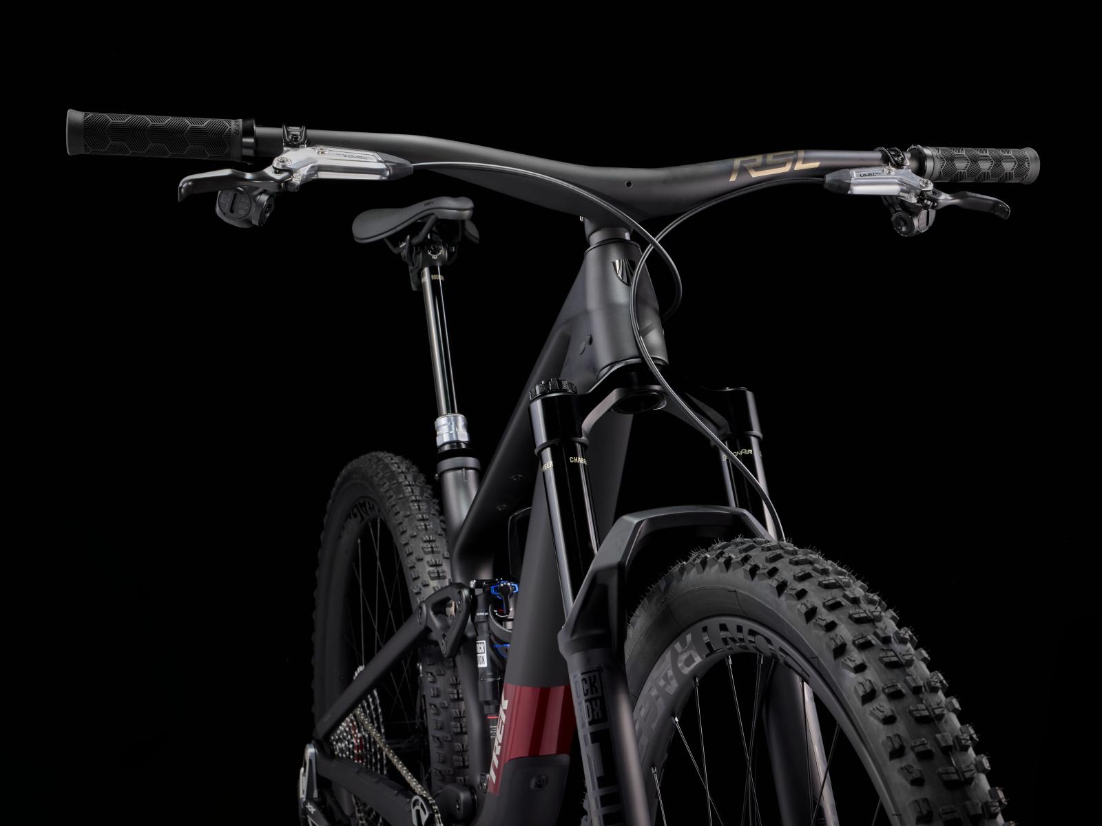Lenker: Bontrager RSL, integrierte Lenker/Vorbau-Einheit, OCLV Carbon, 27,5 mm Rise, 820 mm Breite, Vorbau mit 0 Grad Rise, 45 mm Vorbaulänge